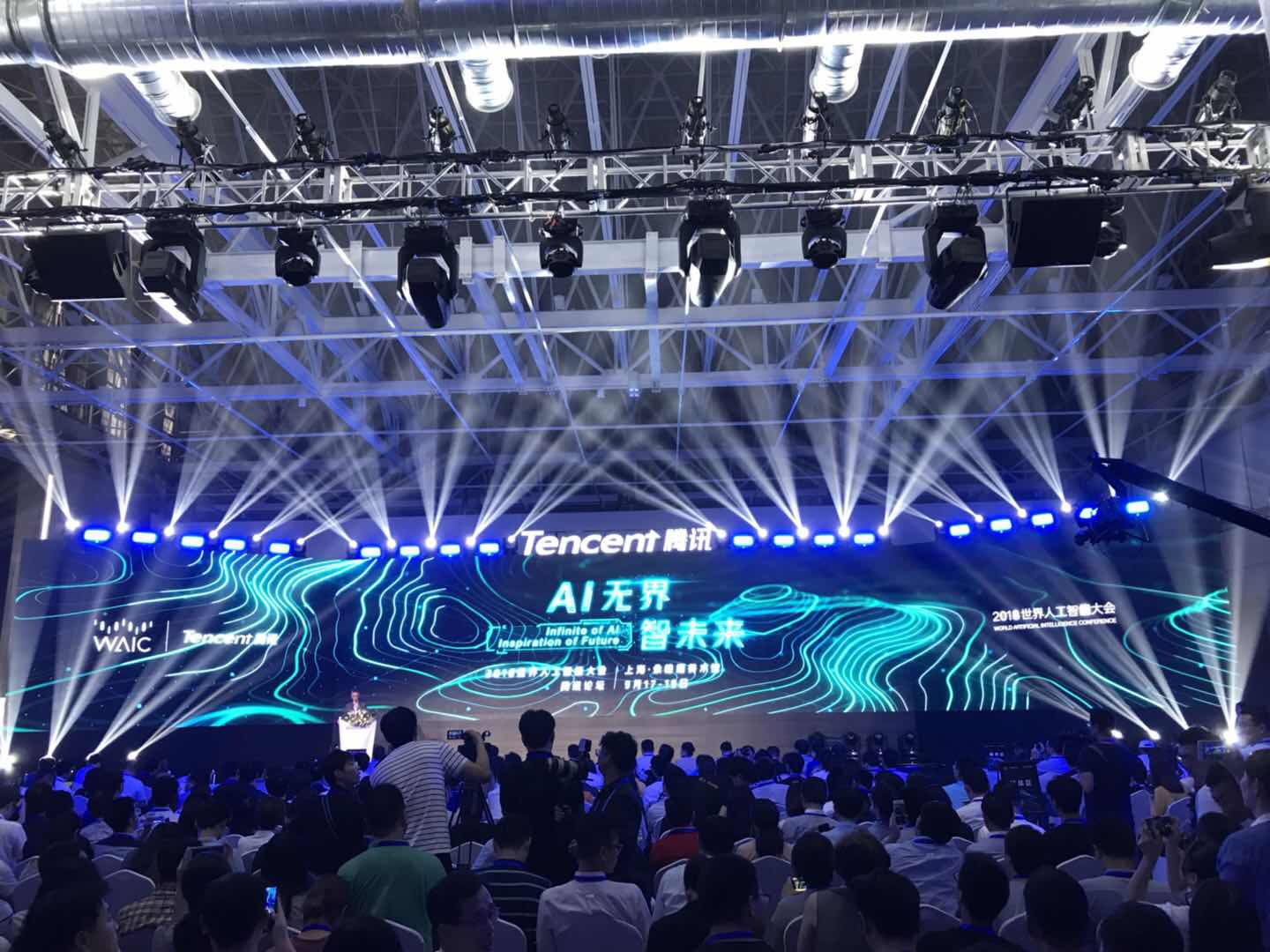 大会第二日,腾讯展馆迎来人流高峰期。上午在这里举办了题为《AI无界·智未来》的主题论坛。上海市副市长吴清出席大会并发表重要讲话;腾讯展示了人工智能在游戏、社交、零售、医疗和机器人这几大领域的应用成果,其中几十台AI机器人的集体舞蹈环节成为全场的高潮。