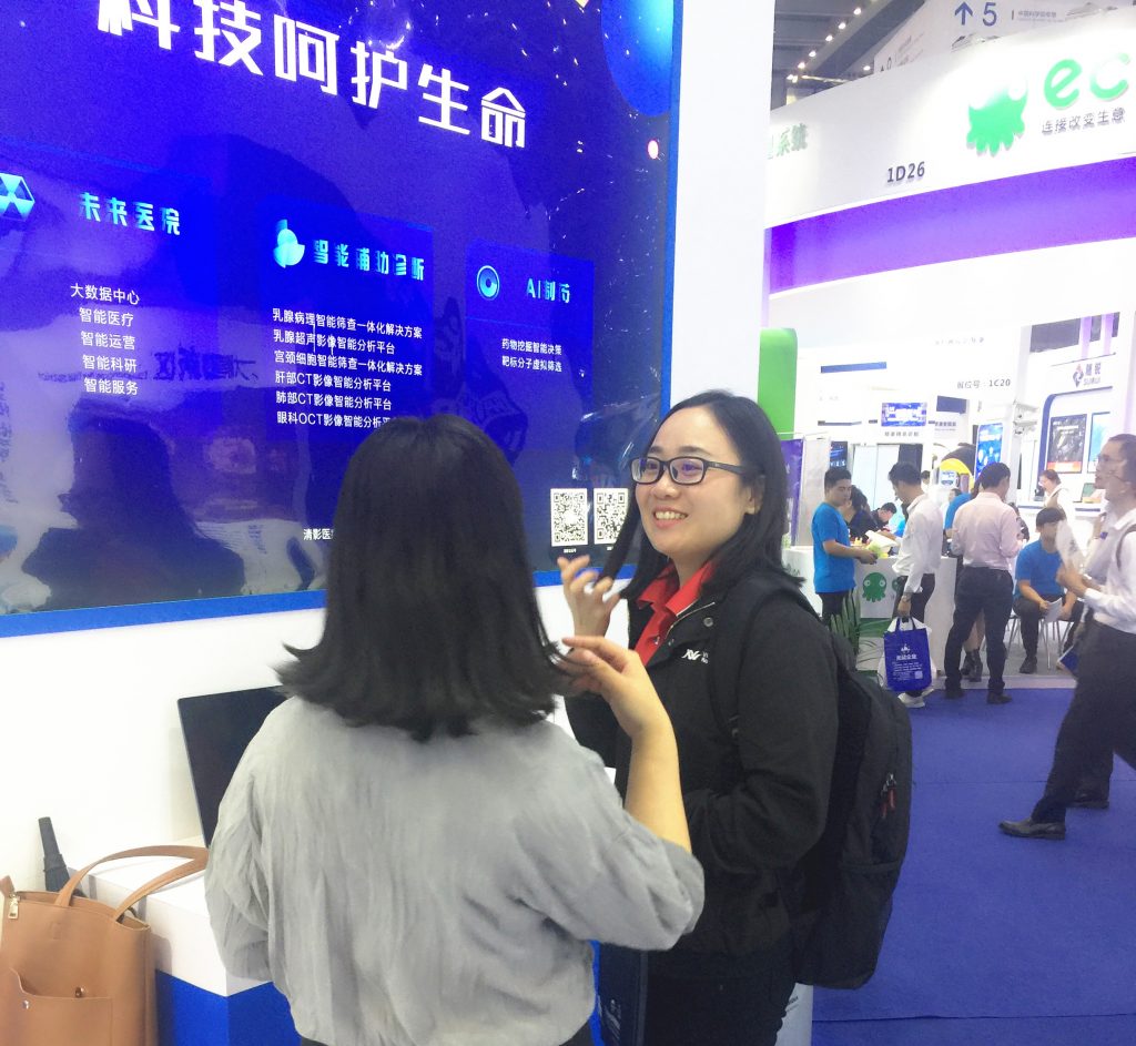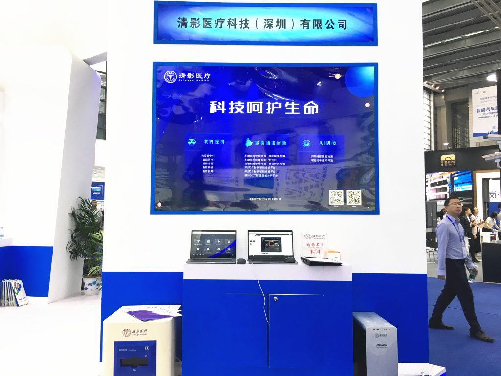 为了在高交会上使出看家本领,全体清影人可谓使足了劲,不仅把清影的智能辅助筛查系列产品线上系统逐个show给观众,还搬来了智能病理扫描仪、高性能运算处理器等“大块头”设备,使观众能更加直观地了解到人工智能算法是如何与超高性能的芯片、精密的医疗器械合作,用科技的力量提高诊断准确率和效率,减轻医生负担,助力精准医疗的。